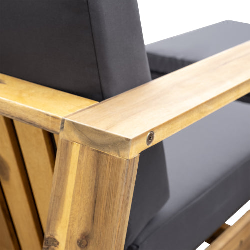 - [Durable Acacia Wood Frame]:Crafted from premium weather-resistant acacia wood, this lounge set effortlessly withstands harsh sunlight, rain, and daily wear, making it a timeless investment for relaxation in patios, gardens, or by the poolside.