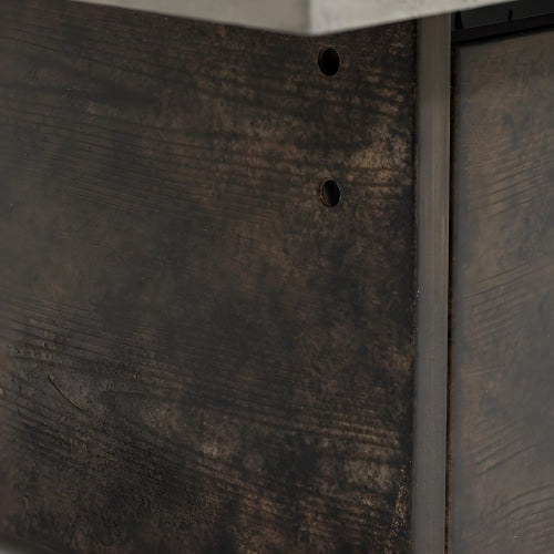 - 3.Cement-Imitating Texture Effect: The outdoor firepit table surface exhibits an uneven texture similar to that of natural cement — boasting a unique tactile quality and a realistic cement-like effect. This not only enhances the product's exquisite appearance but also endows it with a natural charm. The outdoor fire pit tabletop is made of zinc-aluminum alloy plate, and the stove base features a vintage wood-grain finish on iron. This design makes it more durable, long-lasting, and less prone to