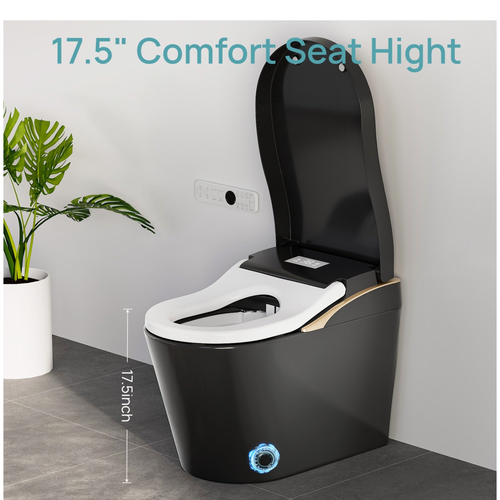 - 【Tankless Smart Toilet with Foot Sensor/Remote:】Experience ultimate hygiene with the hands-free foot sensor/remote. Flush with a simple wave of your foot or remote. Perfect for families and modern bathrooms
