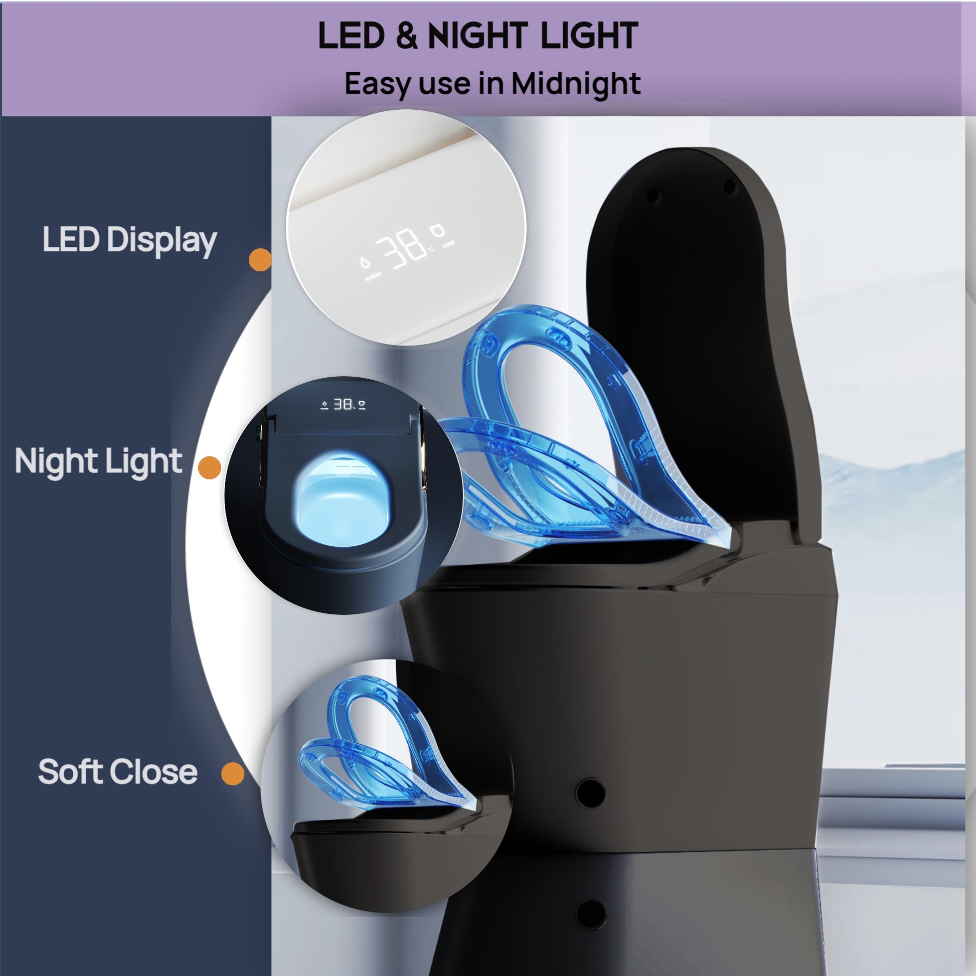 - 【Automatic Open and Close 】 Enjoy a truly touch-free experience. The smart toilet with sensor automatically opens the lid as you approach and closes it after you leave, adding convenience and a sleek, modern touch to your bathroom.