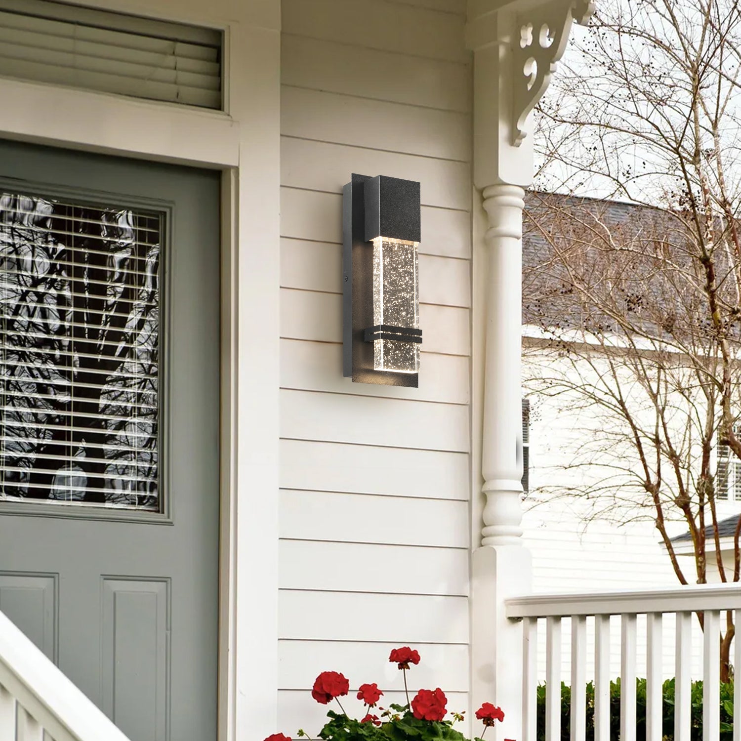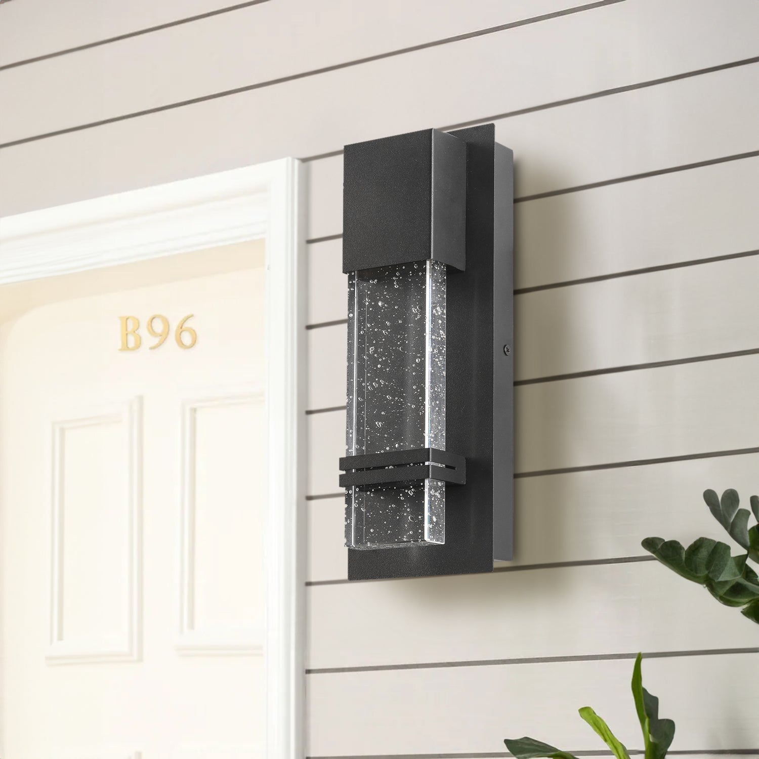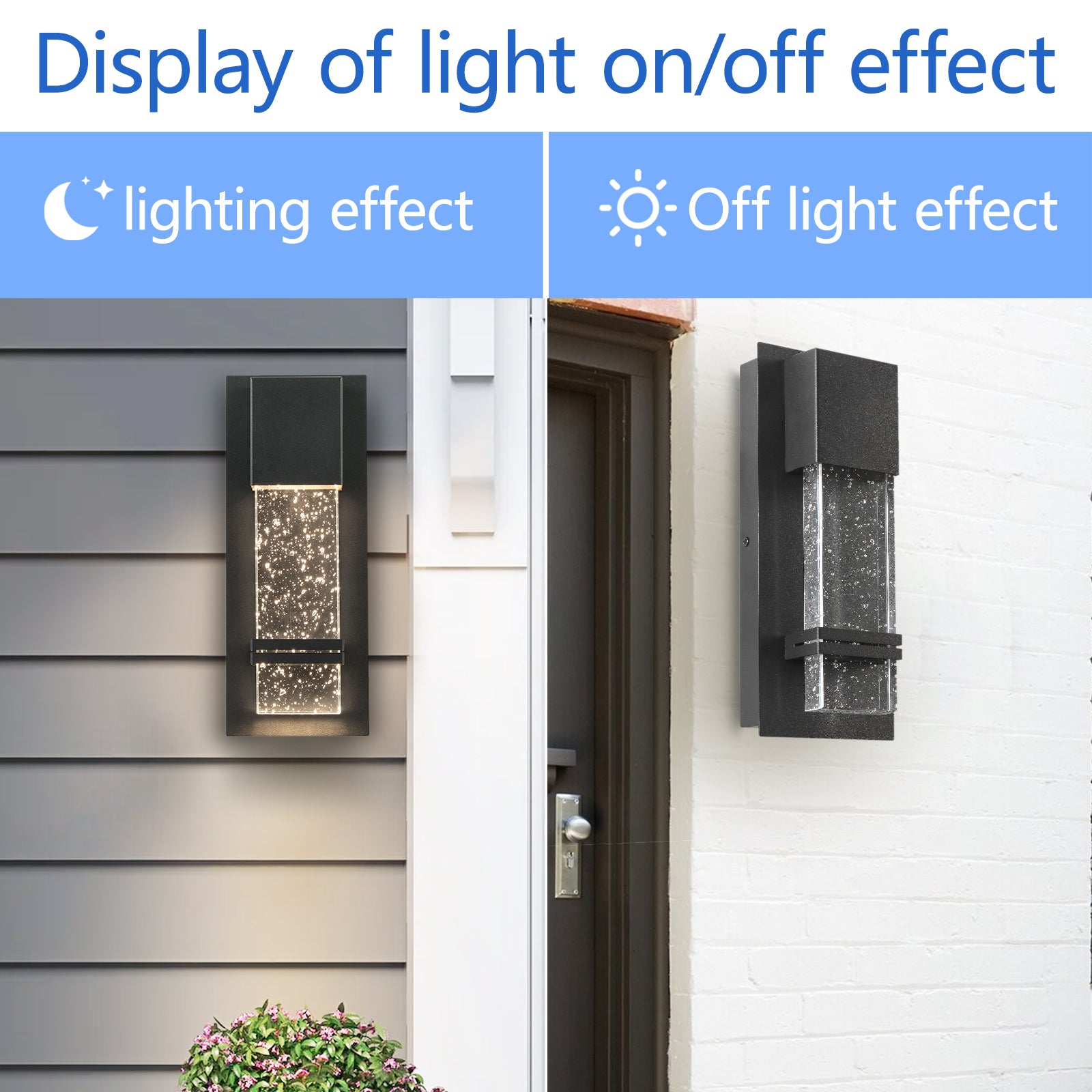 Textured Black Clear Seedy Crystal not Motion Sensing Outdoor Hardwired Wall Lantern Sconce with LED