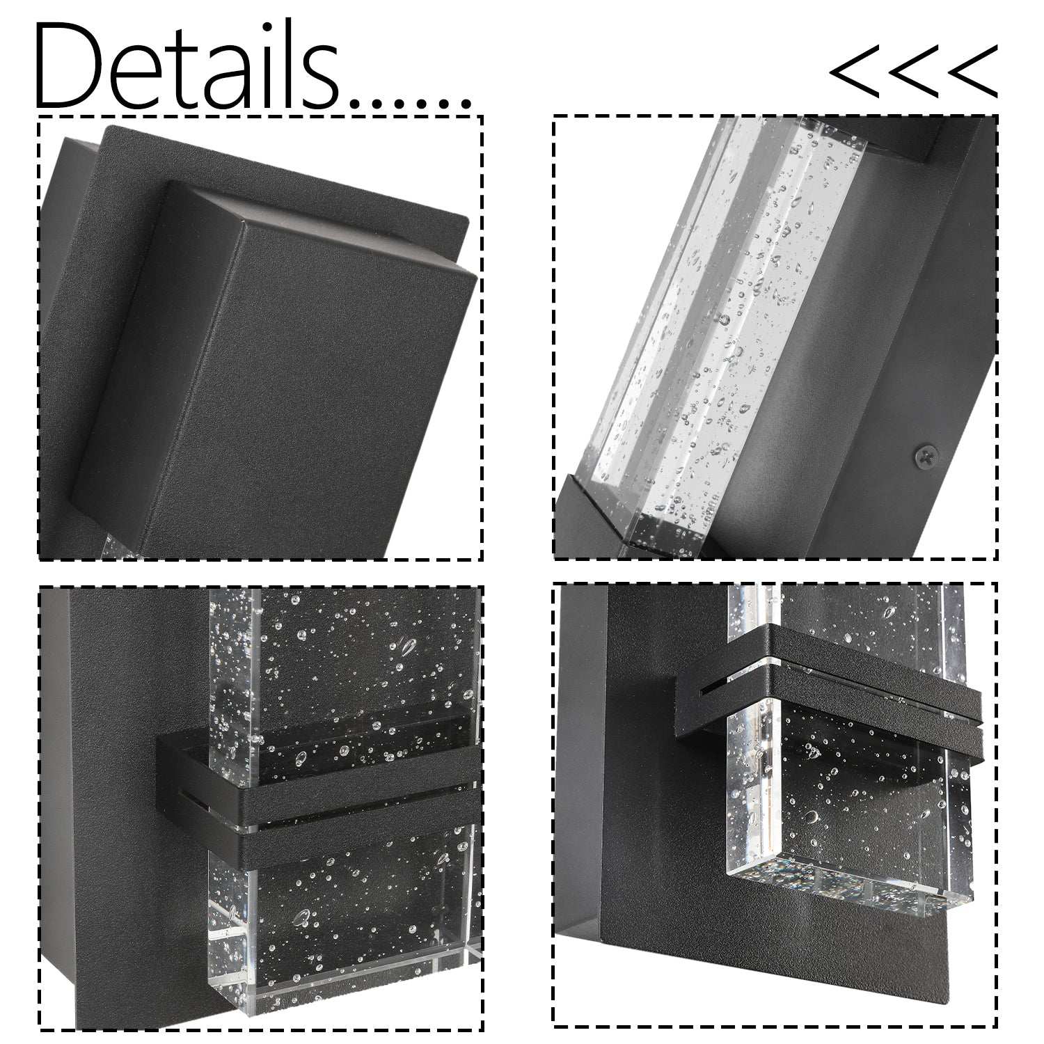 Combining clear bubble crystal with a black textured finish, this lamp features an edgy, contemporary design. At night, every point inside, like a firefly, adds a touch of fun to the surroundings. This simple look works and complements any setting. 10W LED lights are also more energy efficient, making them a good choice for garden and wall decoration.