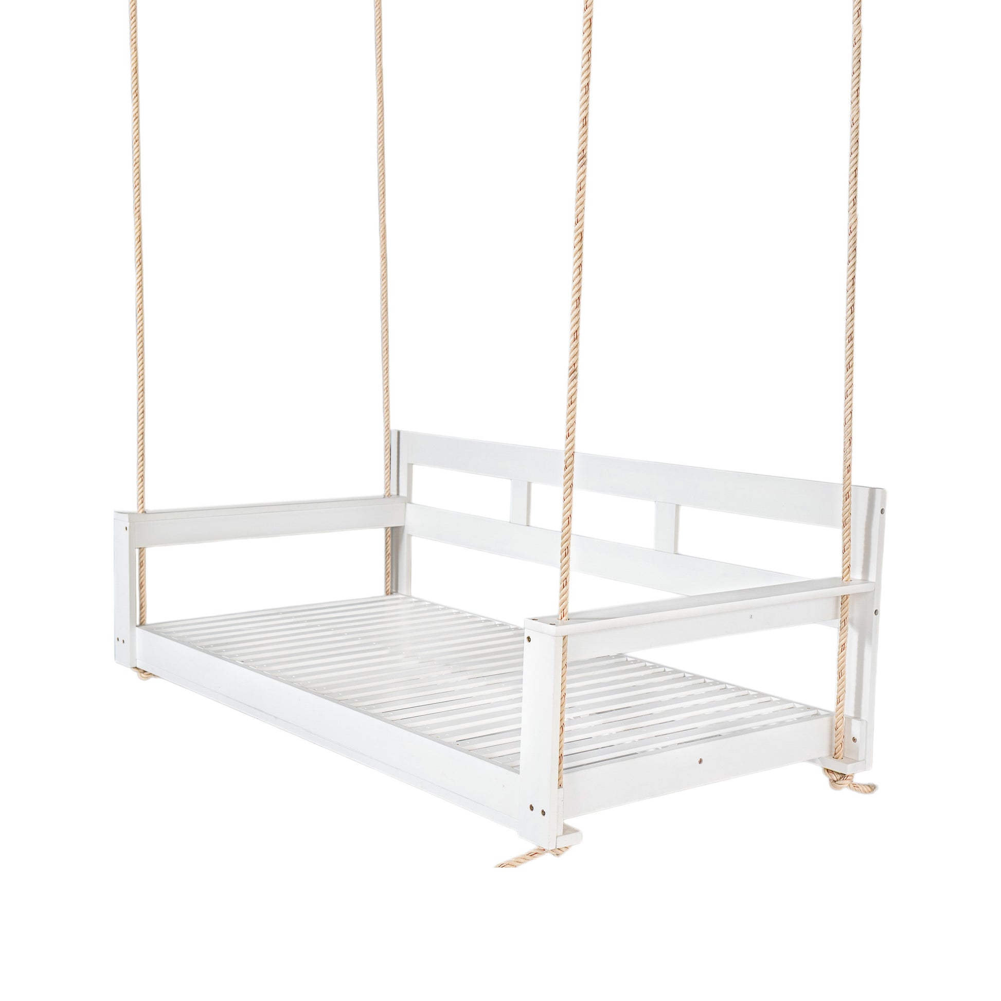 - [Built for Comfort & Relaxation] With a 350lbs weight capacity, this swing bed offers durable support for all your moments of relaxation. Equipped with four 118-inch hemp ropes, it guarantees a safe, smooth swing, bringing you the ultimate escape in comfort. Whether you're enjoying a morning coffee or drifting off for a nap, this swing bed creates a calming retreat for all seasons.