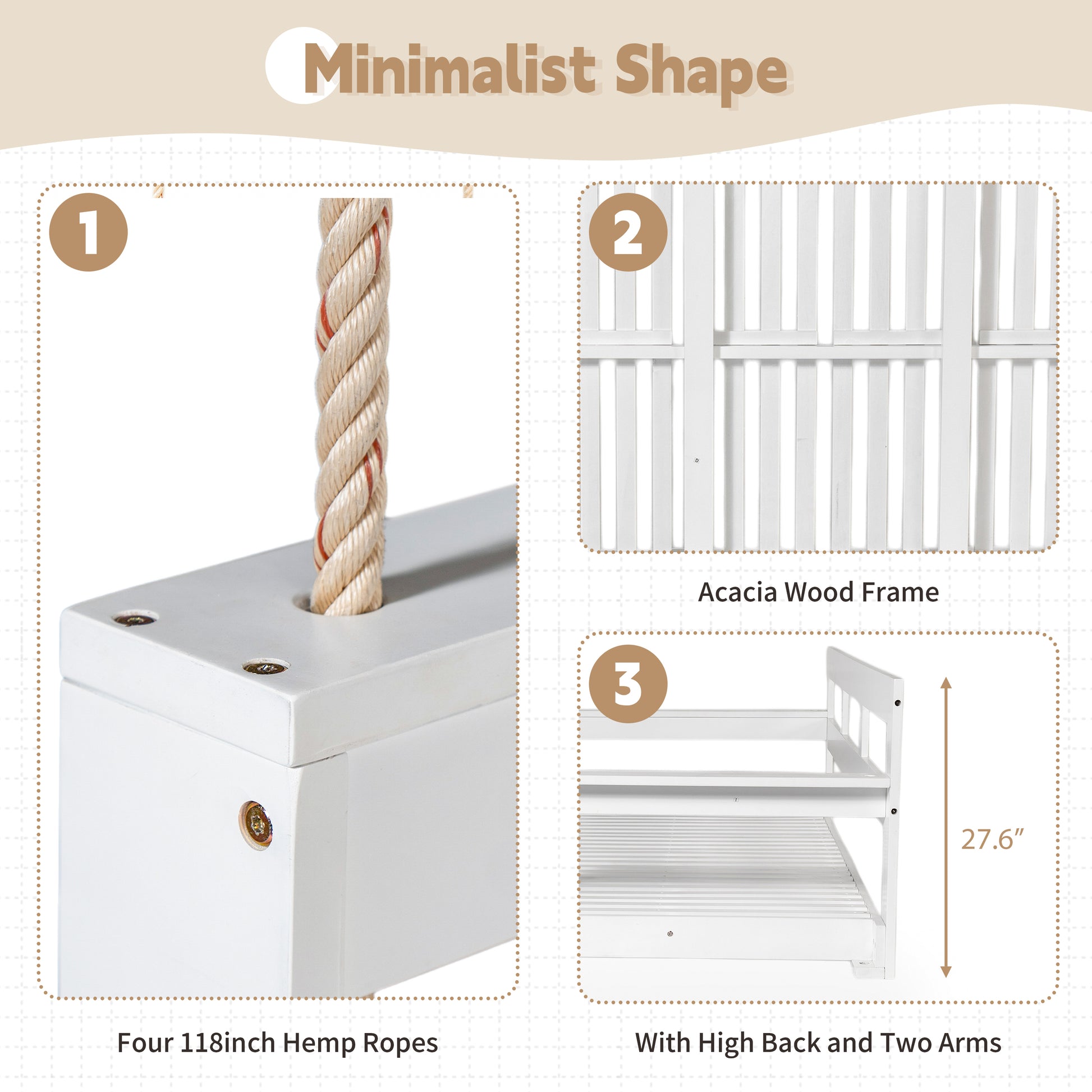 - [Elegant Acacia Wood Craftsmanship] Crafted from premium Acacia wood, this swing bed exudes timeless elegance and durability. Its rich, natural finish with painted coatings complements any décor while offering the strength to last for years. The high back and two arms provide a serene, supportive seating experience, perfect for unwinding with a book or enjoying a peaceful sunset.