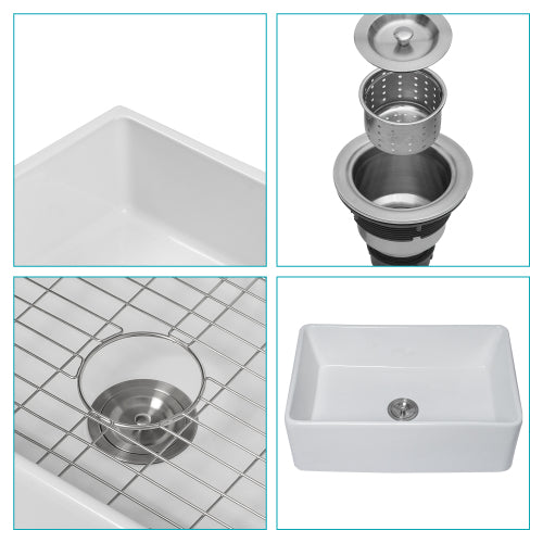 - [Superior Durability & Timeless Elegance] This white farmhouse kitchen sink constructed of ceramic for extreme strength and durability. Kitchen Sink surface is extreme resistance to chips, abrasion or scratches and discoloration for years of beauty and reliable performance.