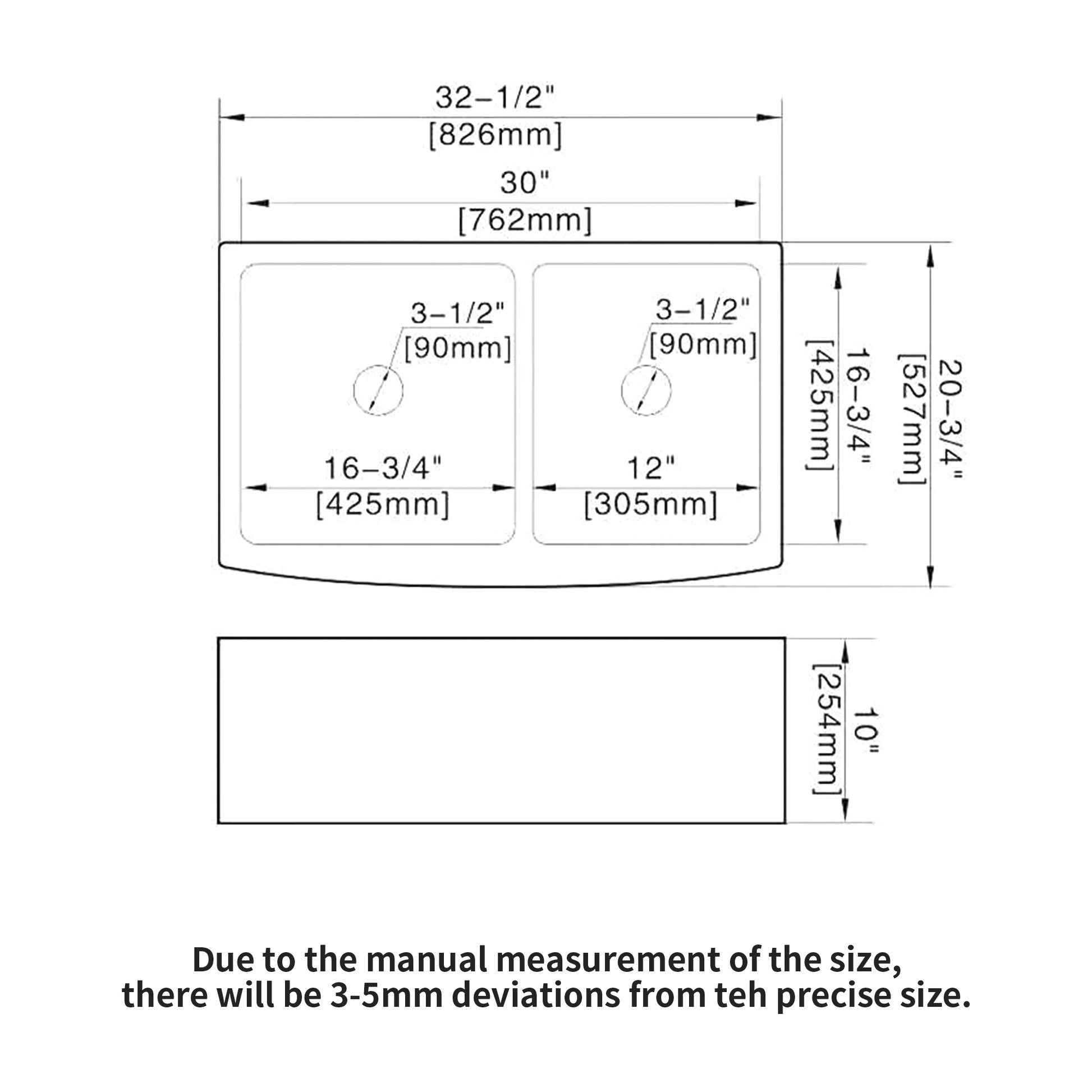 - [Spacious & Deep Design] With exterior dimensions of 33" x 21" x 10", this large double bowl sink offers ample space to clean pots and pans without splashing, making kitchen tasks more efficient.