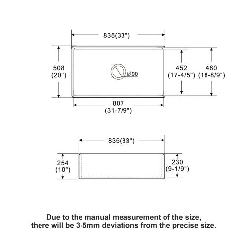- [Superior Durability & Timeless Elegance] This 33 inch white kitchen sink constructed of ceramic for extreme strength and durability. Kitchen Sink surface is extreme resistance to chips, abrasion or scratches and discoloration for years of beauty and reliable performance.