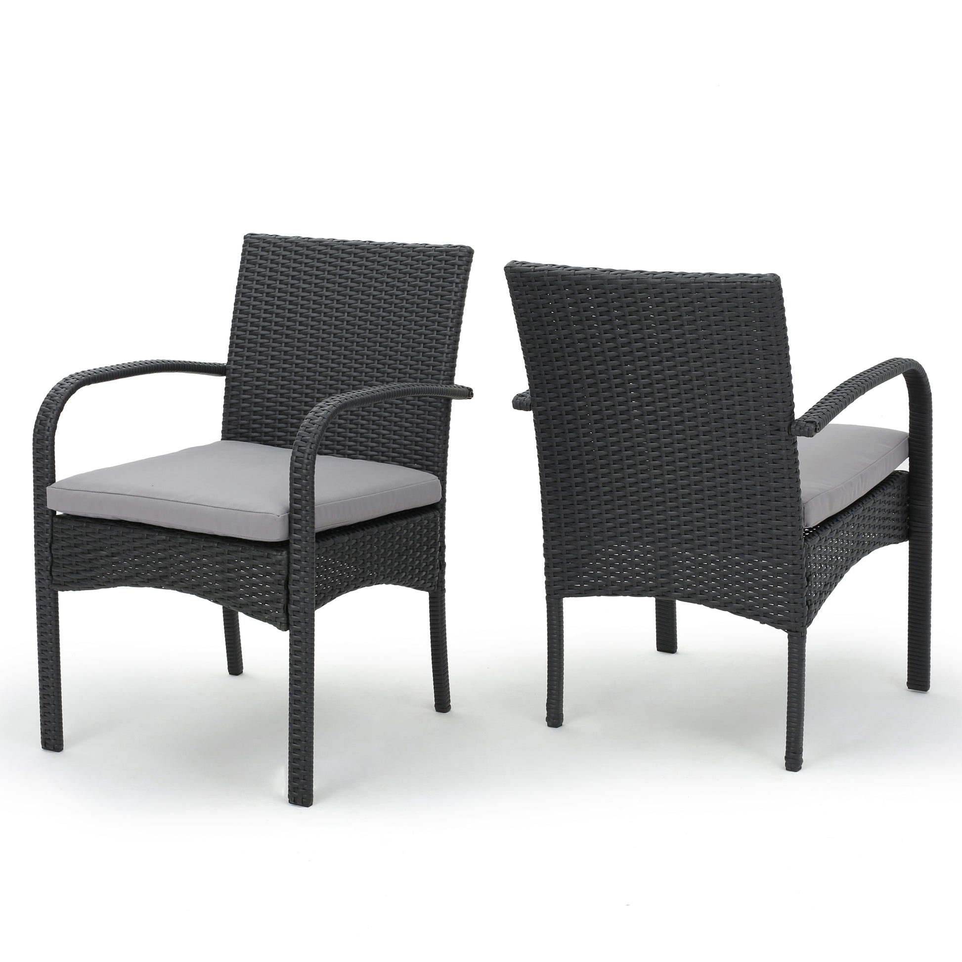 - These outdoor dining chairs are truly one of a kind. This set is neutral in color to match any design elements already in place in your outdoors.