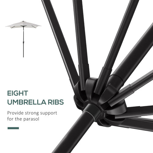 Outsunny 9' x 7' Solar Umbrella, LED Lighted Patio Umbrella for Table or Base with Tilt & Crank, Outdoor Umbrella for Garden, Deck, Backyard, Pool, Beach, White