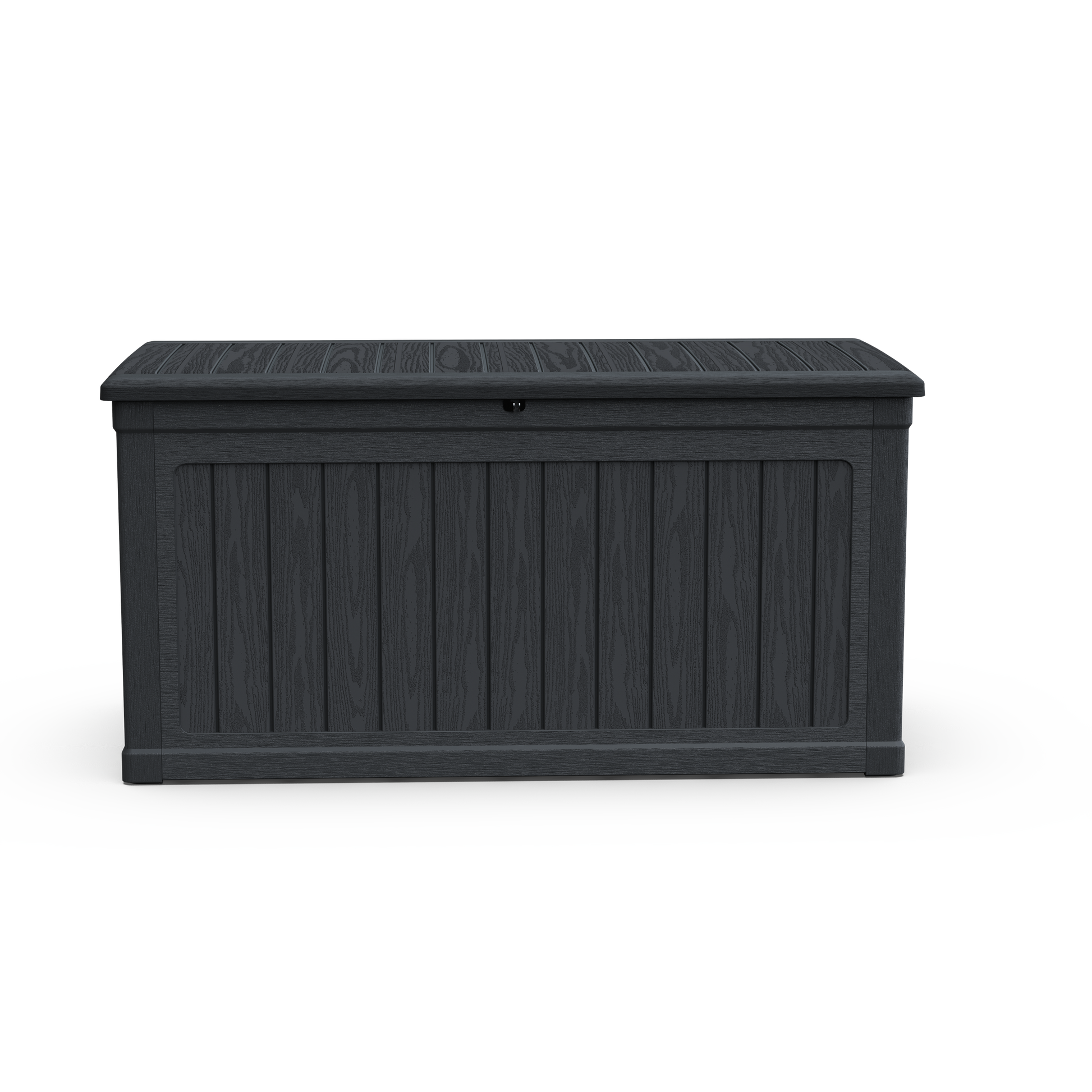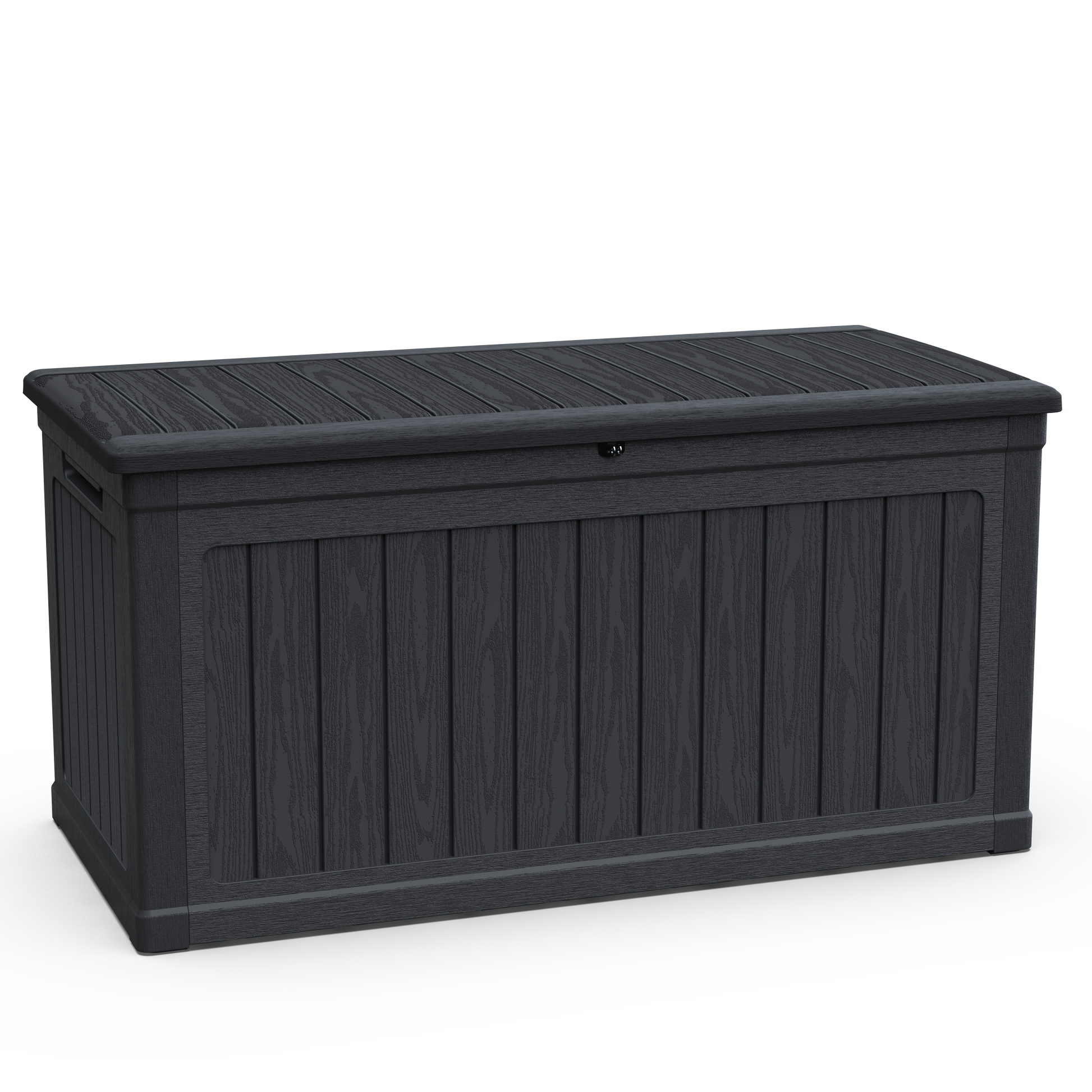 - MULTIPURPOSE GARDEN STORAGE: Doubles as an extra table or bench to accommodate 440lbs, this deck box blends into any yard or patio while storing patio cushions, gardening tools, pool supplies, etc