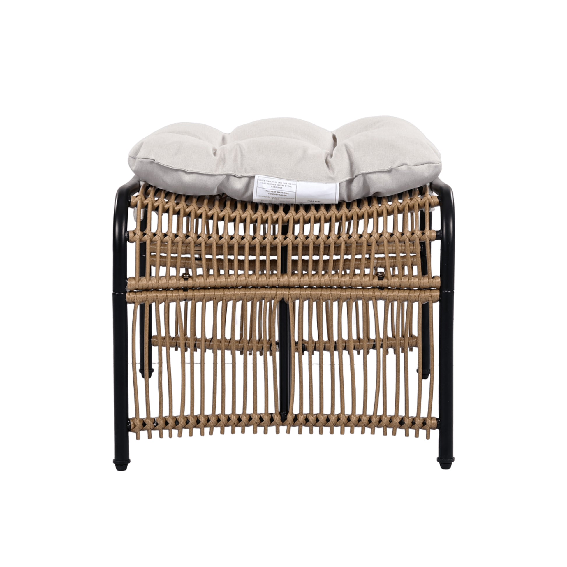 3 Pieces Wicker Outdoor Patio Furniture Set with Lounge Chair, Balcony Chairs Table Set with Cushions, Ottoman, Patio Conversation Sets for Garden ,Deck,and Porch, Black & Natural & Beige