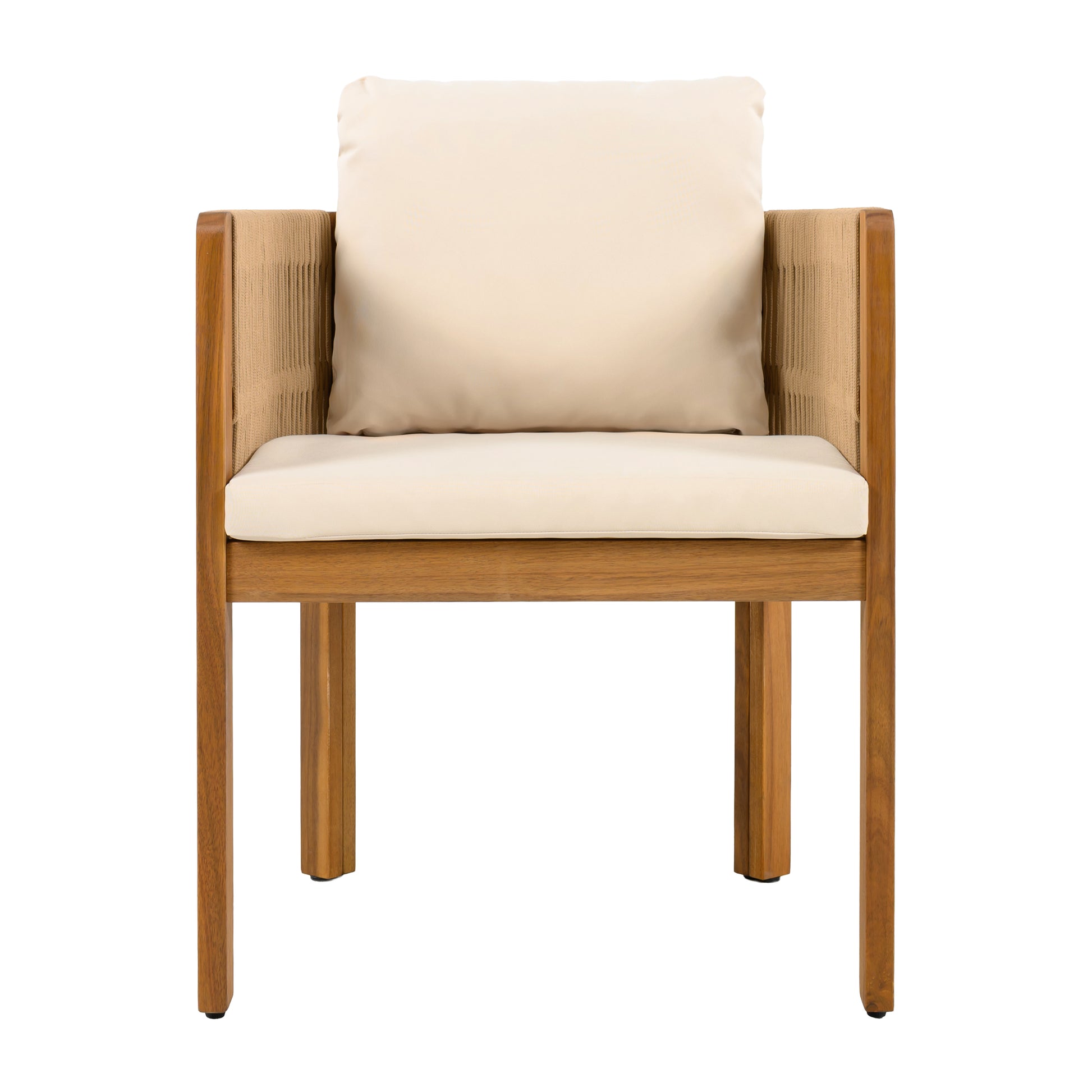 Acacia Wood Outdoor Dining Chairs 2-Pack with Brown Rope Handles, Washable Waterproof Beige Cushions, 400 lbs Capacity