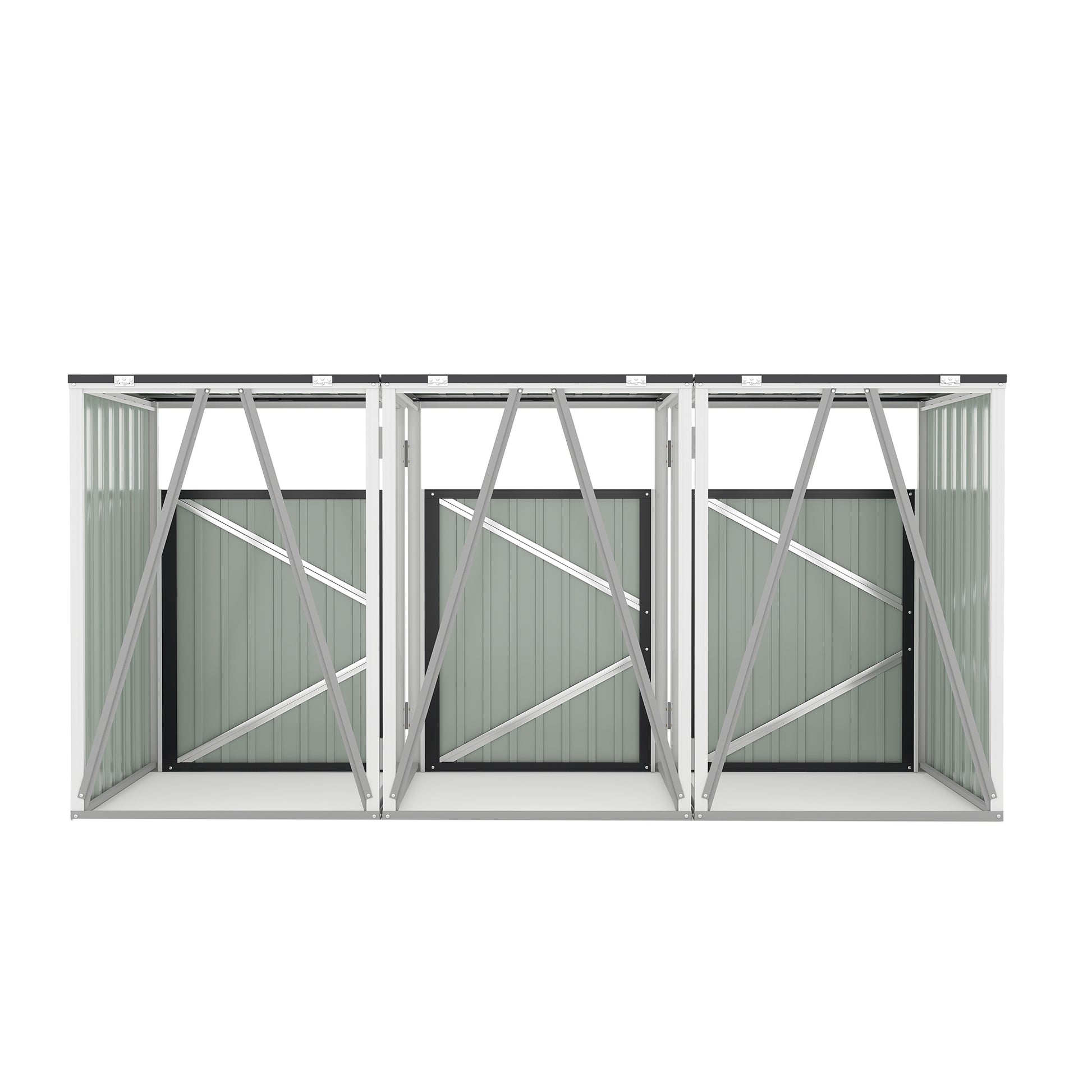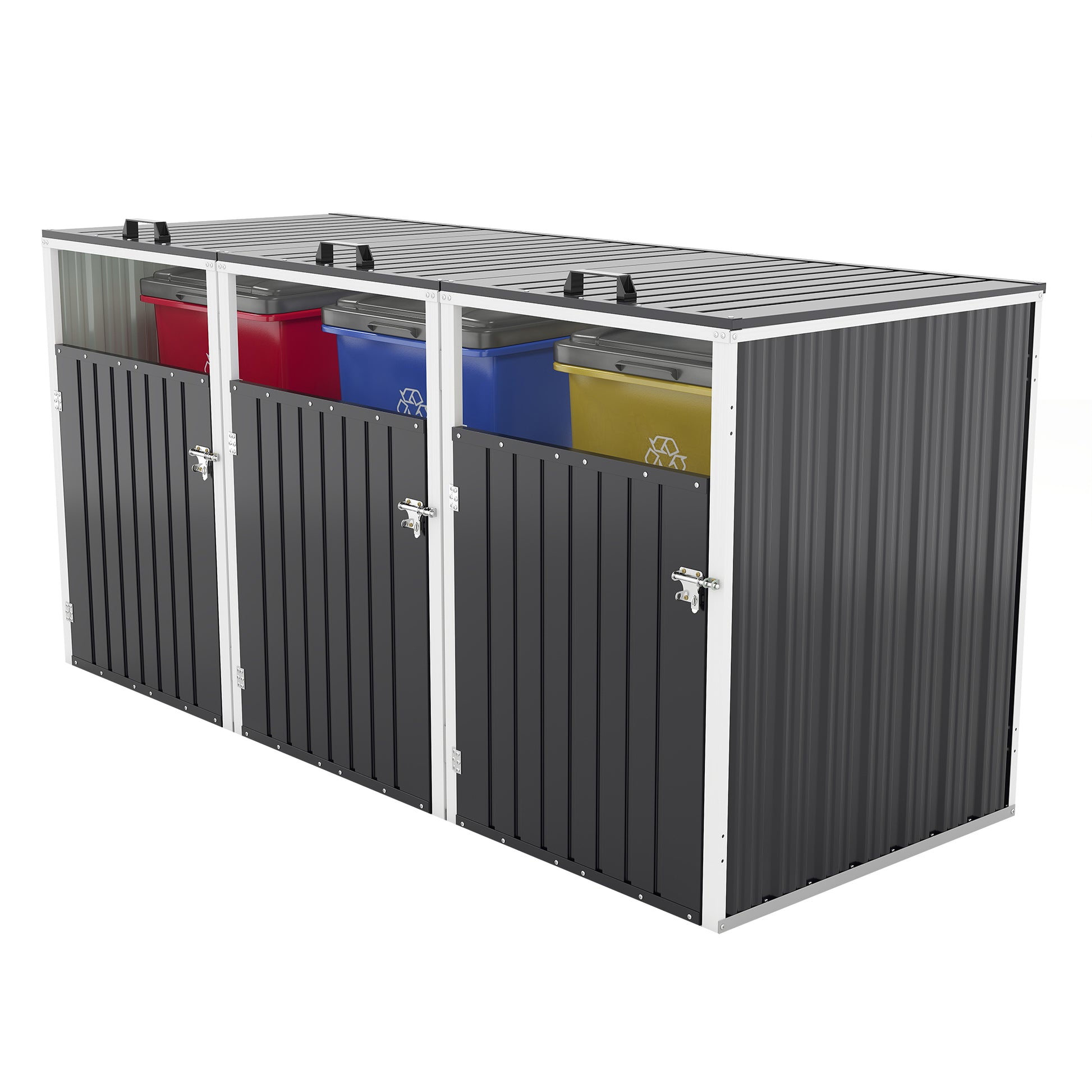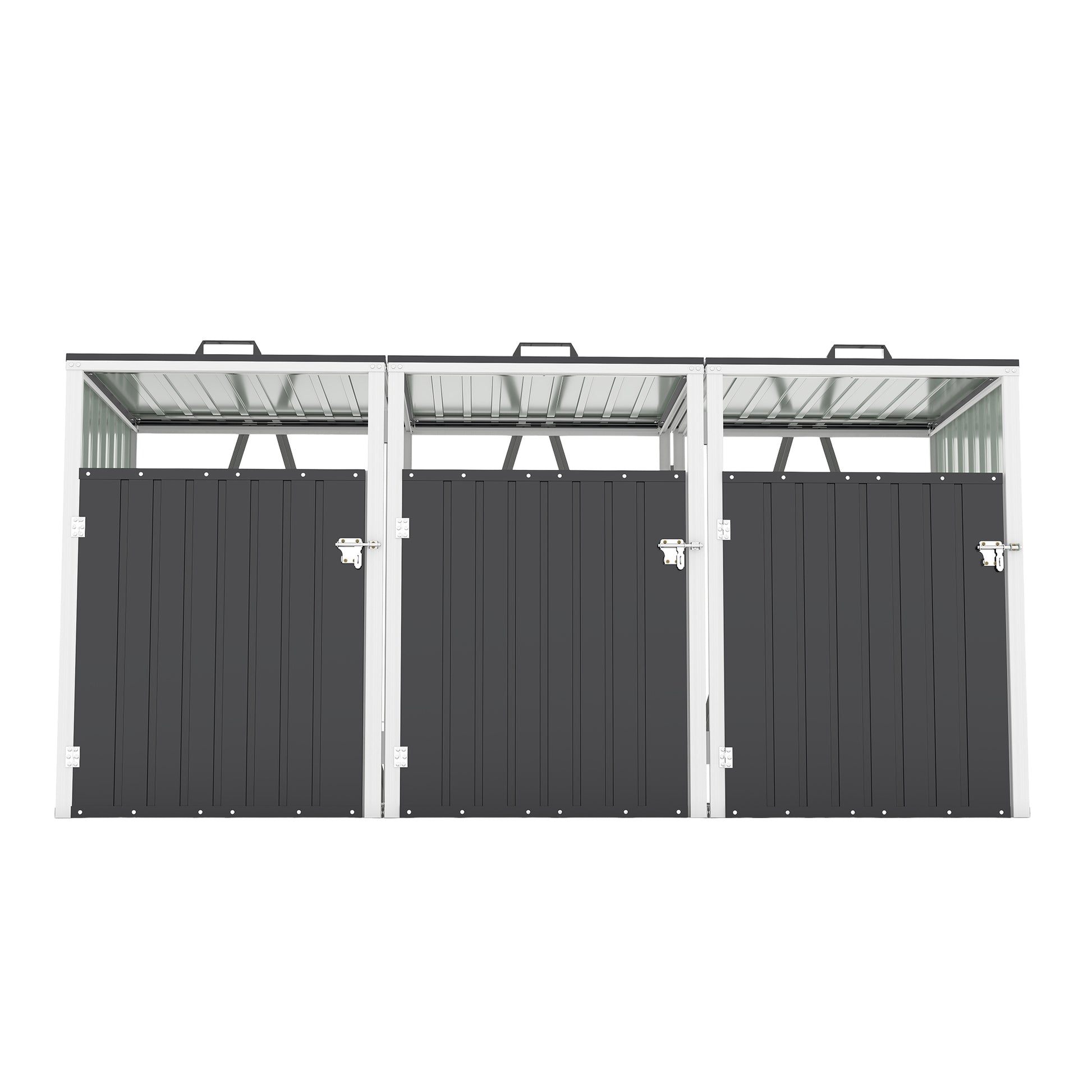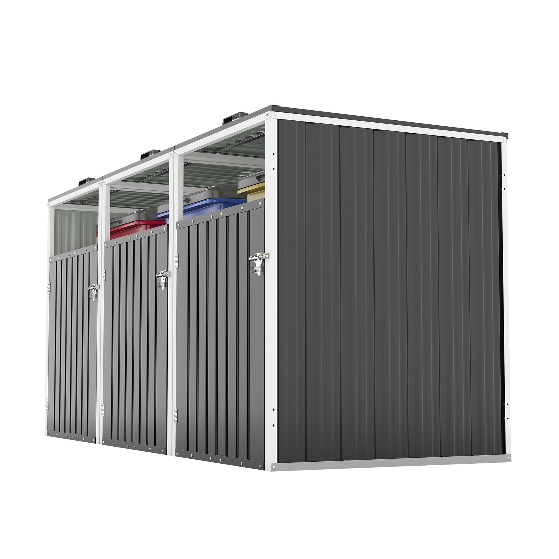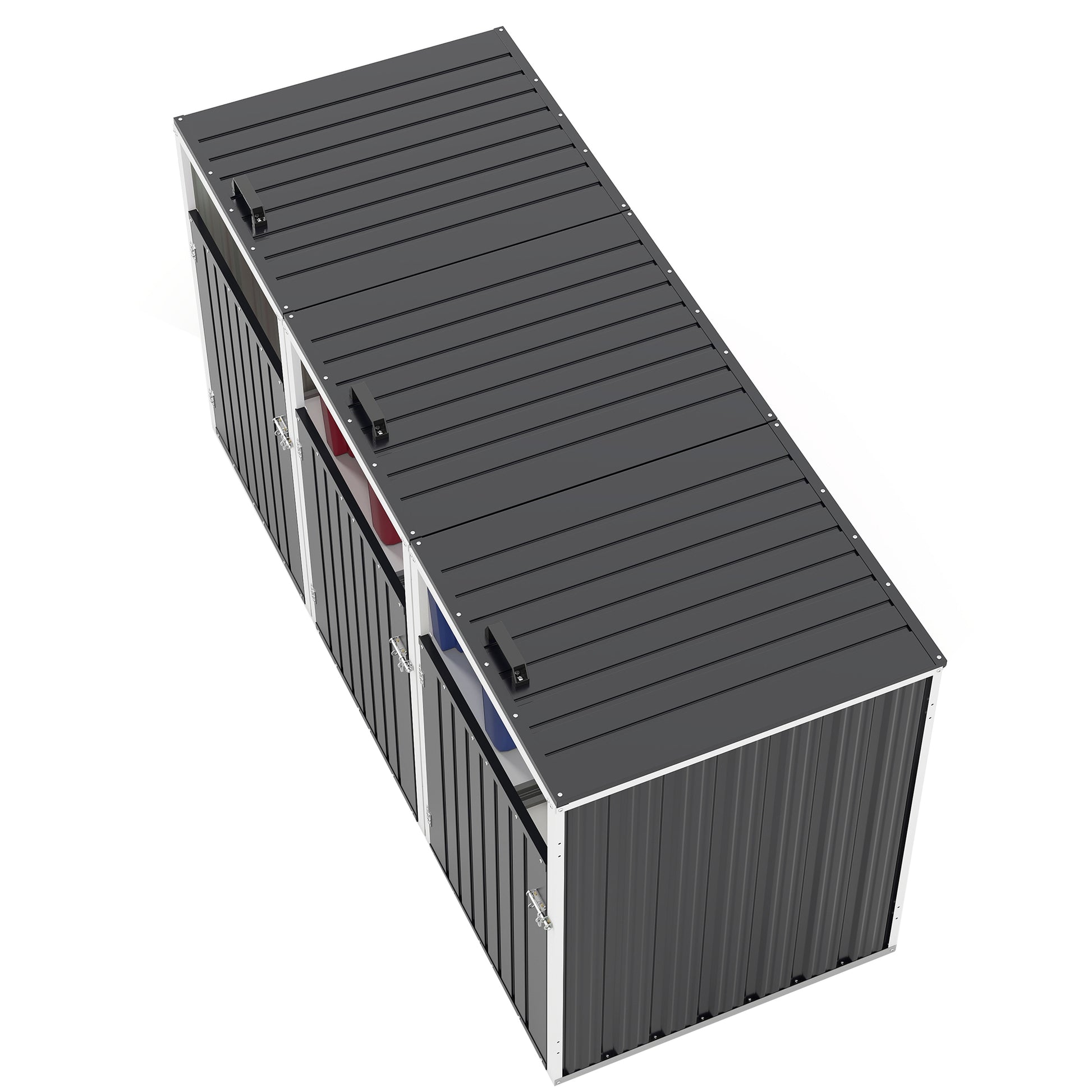 Garbage Bin Shed Stores 3 Trash Cans with Pneumatic Support Rod, with Lockable Doors & Waterproof Lid Chain, for Patio,Garden,Backyard,Grey