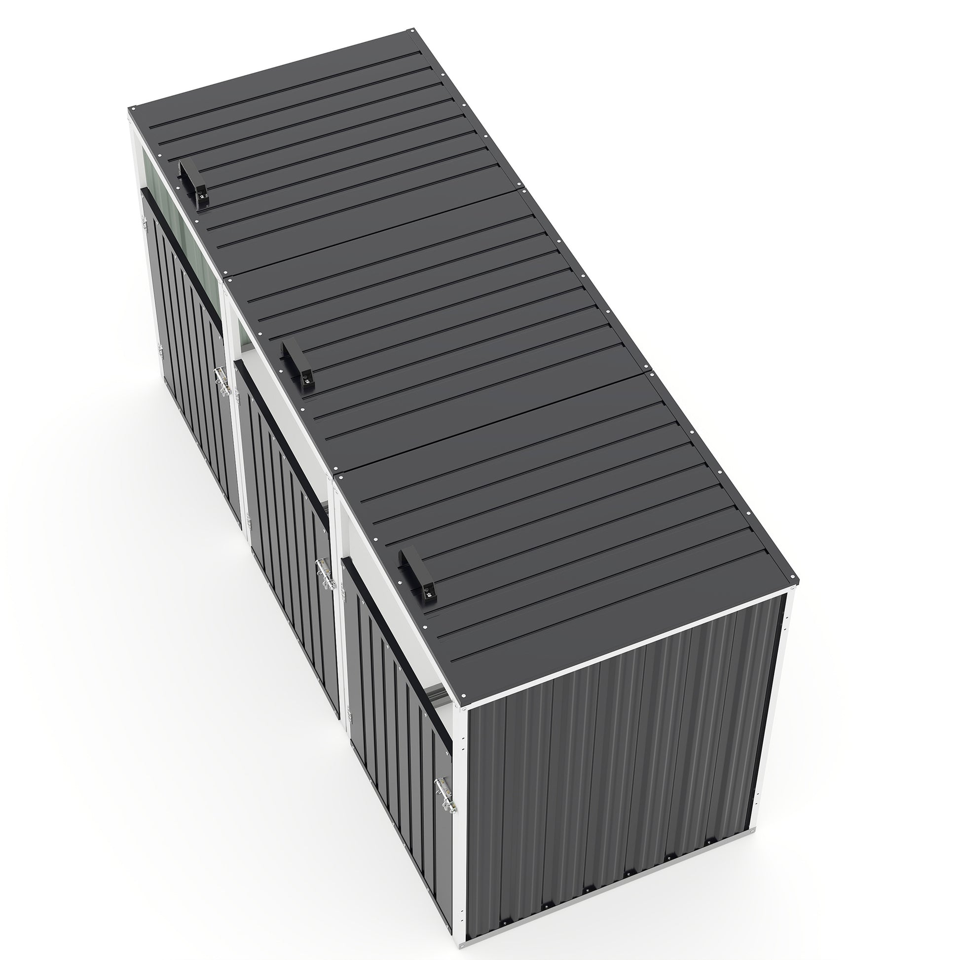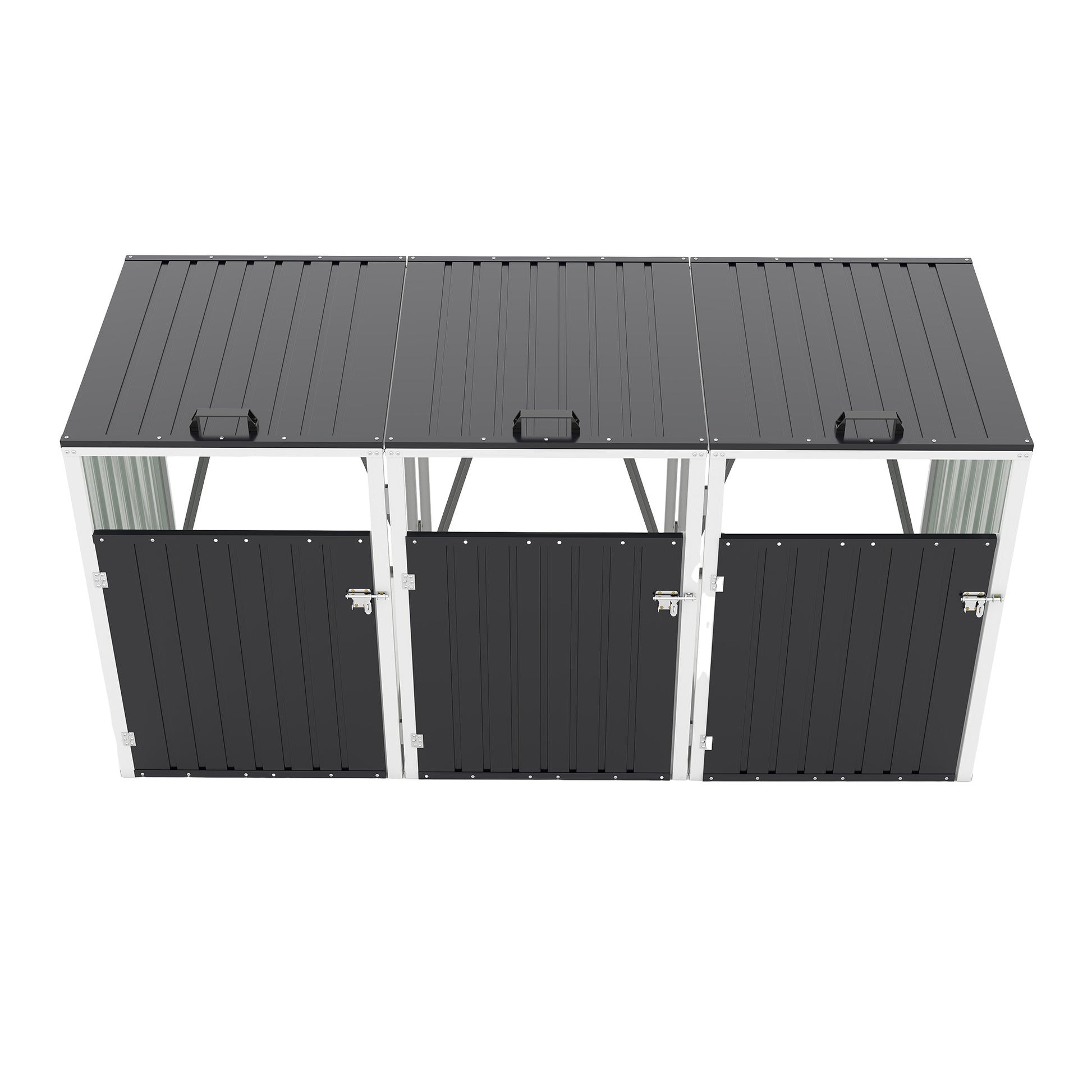 - Practical Design: The metal storage shed(trash bin shed) comes with a door bolt, which significantly boosts the security of your items and helps avoid loss. Its appealing look enables it to integrate effortlessly into your garden, backyard, patio, and other outdoor spaces