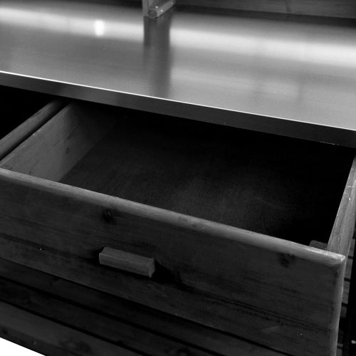 - [Stainless Steel Table] The 1.18-inch thick tabletop made of 201 stainless steel provides an easy-to-clean surface, allowing for effortless maintenance after use. This design eliminates concerns about fine dirt penetrating wood grains or leaving water stains, thereby extending the console's service life.