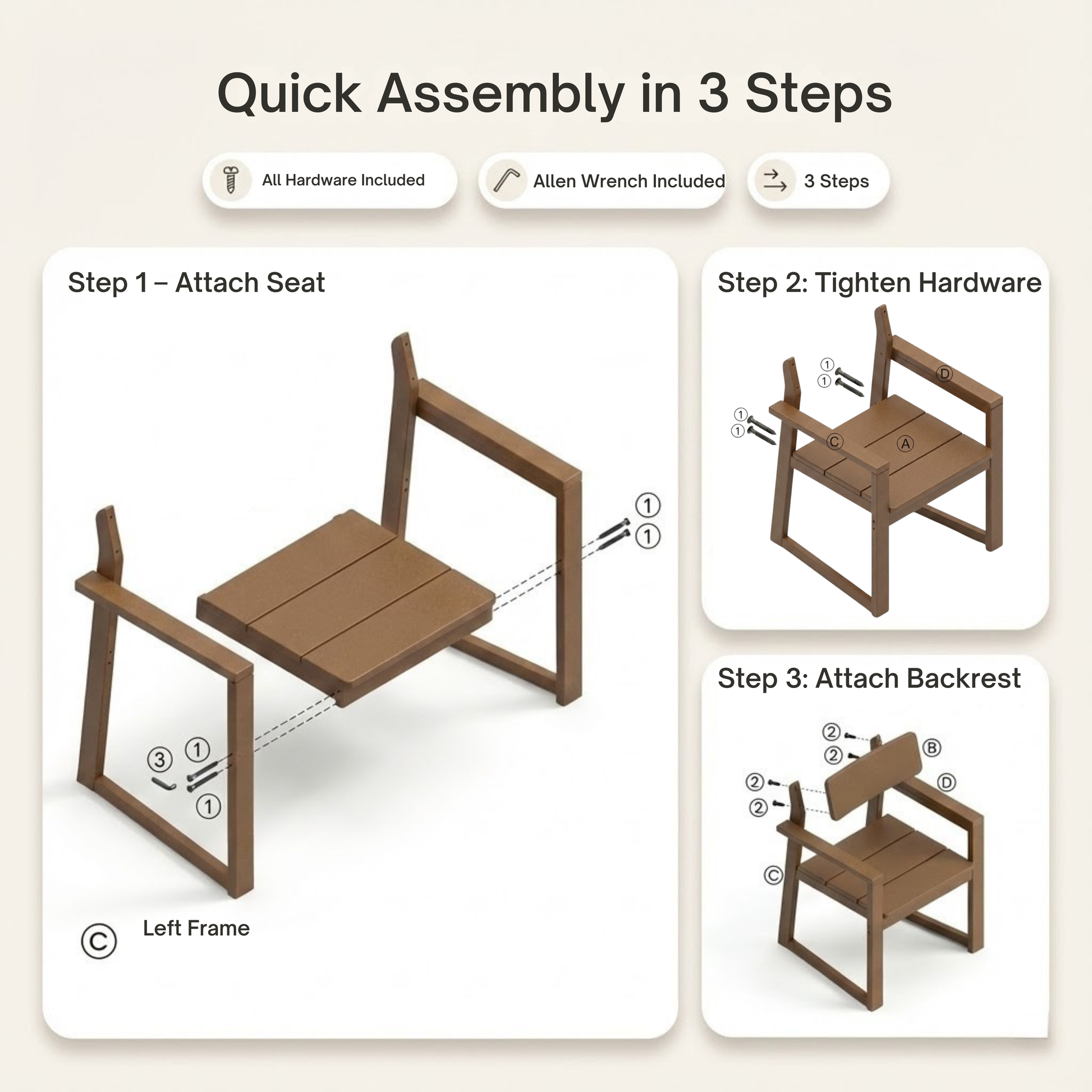 Outdoor Dining Armchairs, All-Weather Patio Chairs with Backrest & Armrests for Backyard, Deck, Porch, Garden