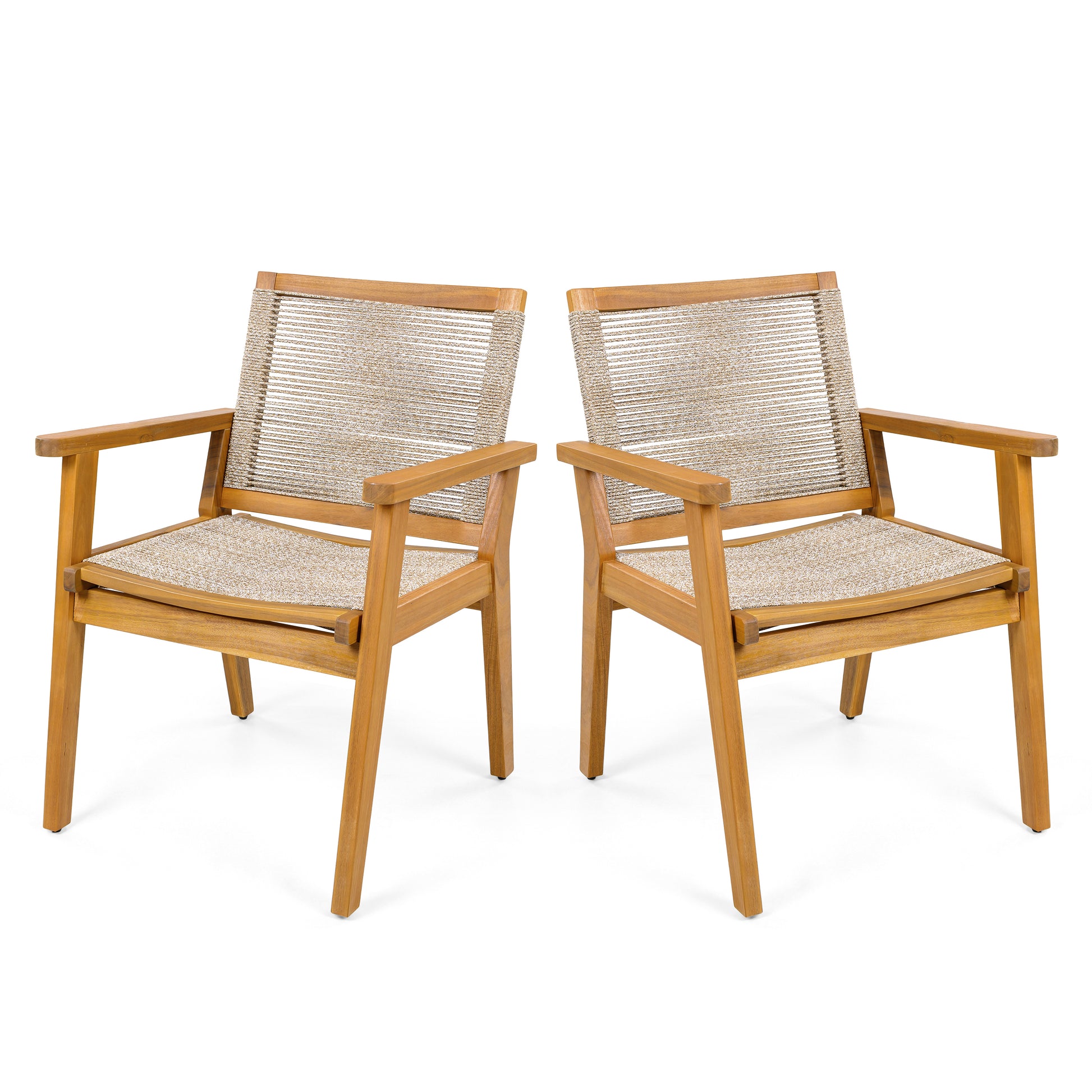 Outdoor Dining Chairs Set of 2, Teak Finish Wood Frame and Mix Brown Rope, Natural Courtyard Style, 400lbs Capacity