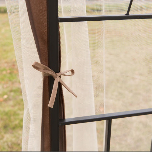 10' x 10' Metal Patio Gazebo, Double Roof Outdoor Gazebo Canopy Shelter with Tree Motifs Corner Frame and Netting, for Garden, Lawn, Backyard, and Deck, Brown