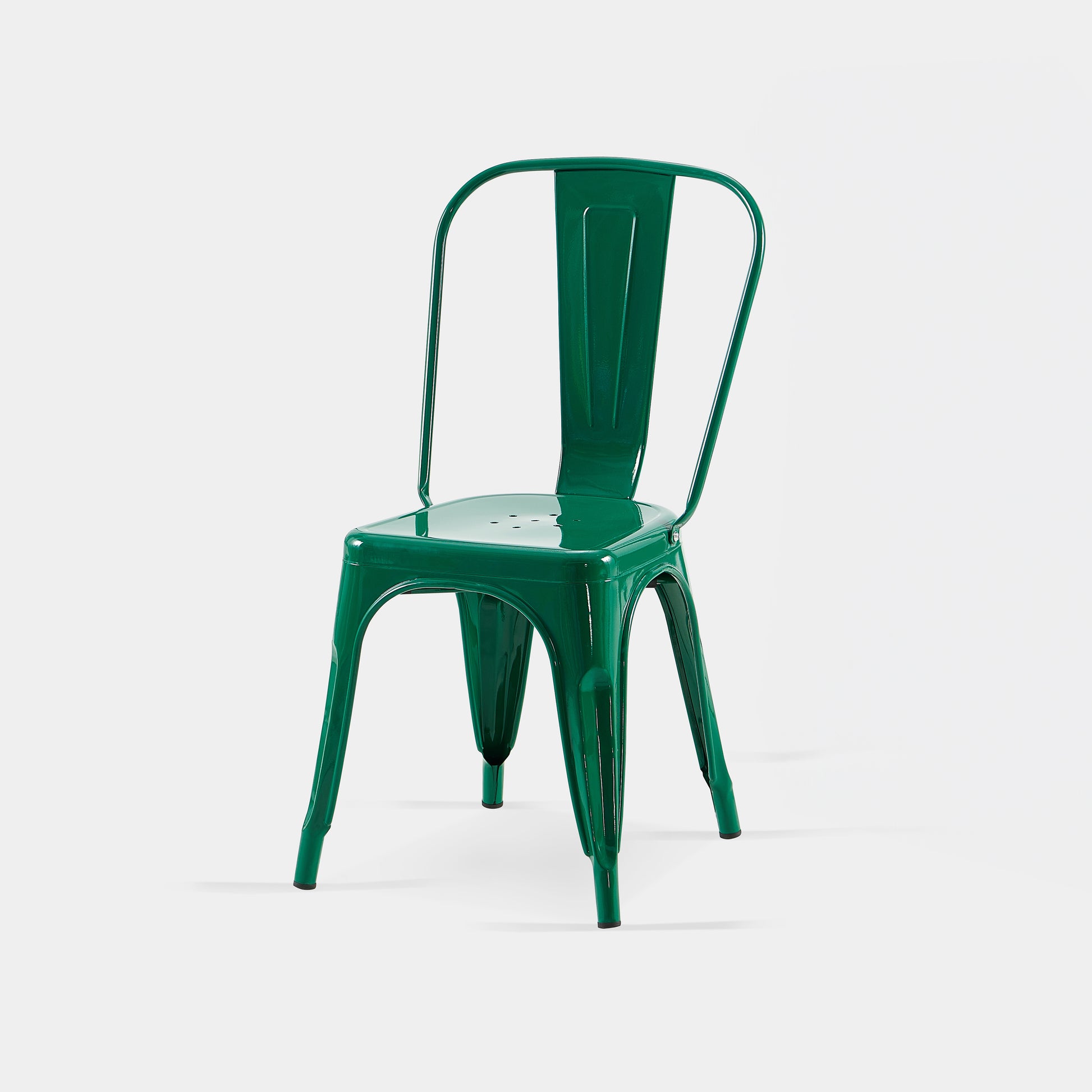 Set of 2 High Gloss Green Industrial Metal Dining Chairs 18 Inch Seat Height Stackable Indoor Outdoor, Lightweight Easy-Clean Surface, Easy Assembly, Durable Modern Design, For Kitchen Cafe Bar