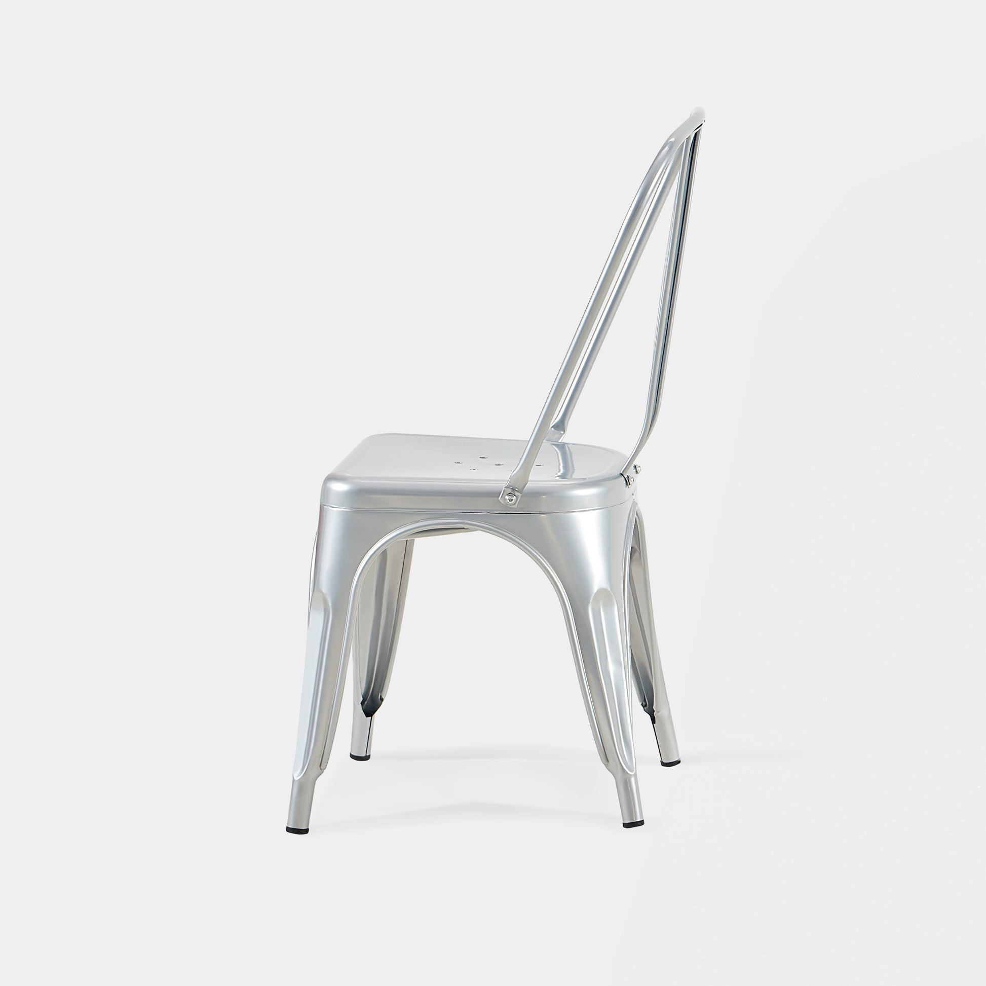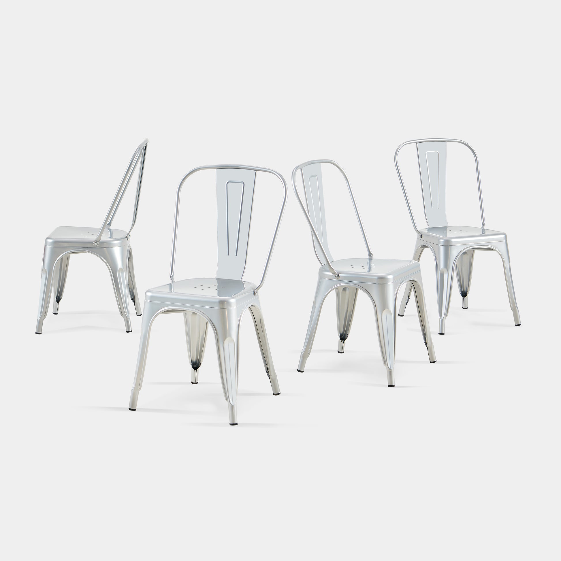 Set of 4 High Gloss Silver Industrial Metal Dining Chairs 18 Inch Seat Height Stackable Indoor Outdoor, Lightweight Easy-Clean Surface, Easy Assembly, Durable Modern Design, For Kitchen Cafe Bar